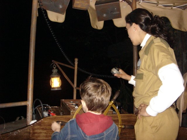 We started the day early and hit all the “must do” rides (Splash Mountain, Buzz Lightyear, Winnie the Pooh, etc.) then returned to the hotel for naps and a movie. After an early dinner we were back at the park about 7 pm and found the lines much smaller. We couldn’t believe it but we didn’t leave the park until almost 1 a.m. Abby even got to see her High School band perform. The highlight of the evening was Quinn getting to drive the boat on the Safari Cruise and they even gave him a “driver’s license” to bring home.