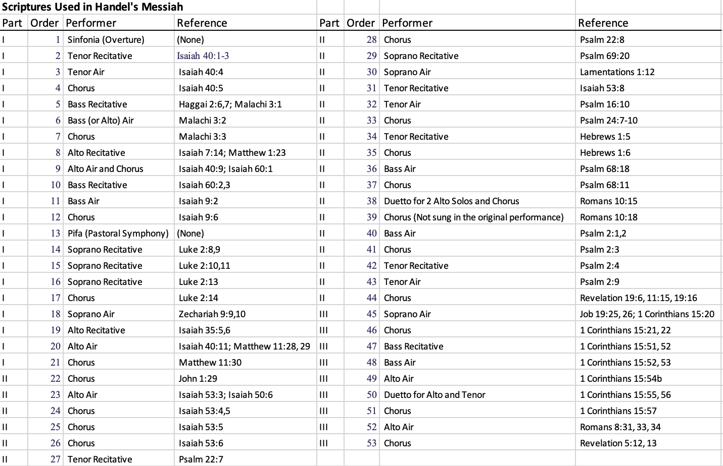 Handle’s Messiah Scripture References